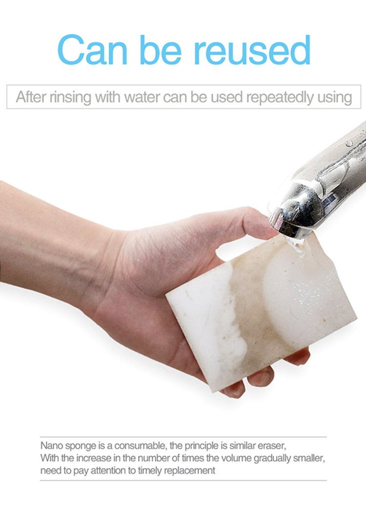 Волшебная губка использовала специальную физическую структуру-тройку размерной размерной ячейки. Он широко используется для очистки в различных местах, таких как кухня, ванная комната, автомобиль и т. Д. Это здорово и экологически чисто. И он используется только с водой, а не с мощными средствами.